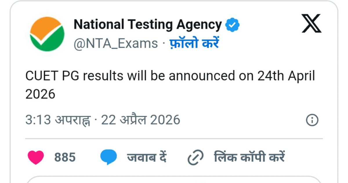 यह भी पढ़ें- CUET PG Result 2026: 24 अप्रैल शाम 5 बजे आएगा रिजल्ट, ऐसे करें सबसे पहले चेक